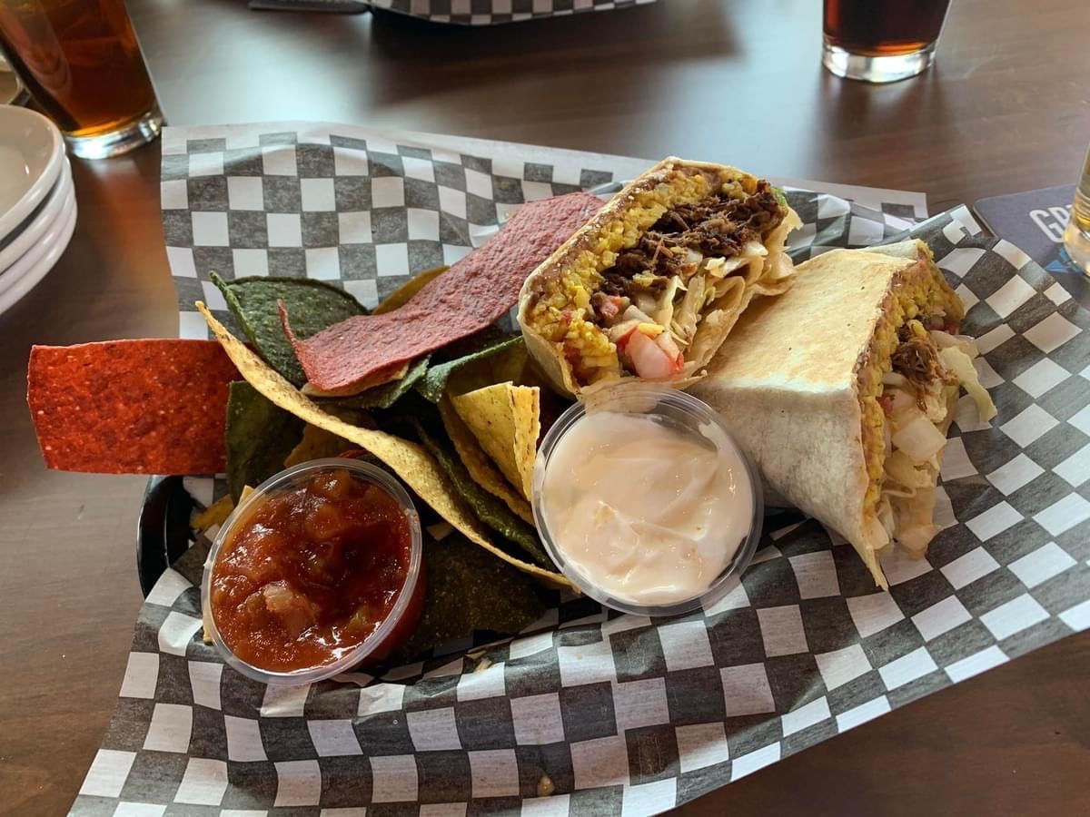 Mexican rice, refried beans, Tex-Mex cheese, Pico de Gallo, cabbage, Chaco’s sauce, choice of meat. Served with homemade chips.
