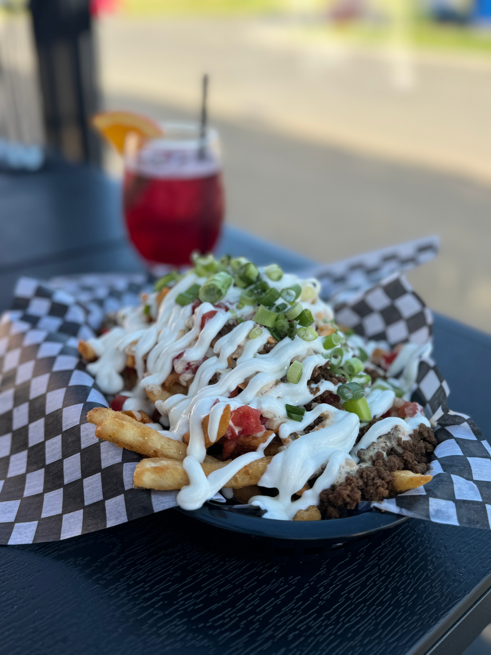 Tex-Mex cheese, Pico de Gallo, tomato, Chaco’s sauce, sour cream, green onion.
