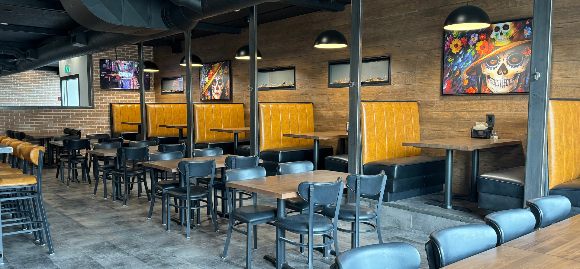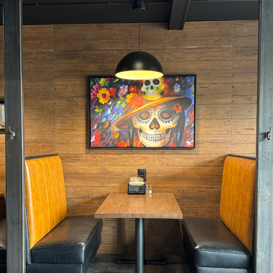 Rolled flour tortillas stuffed with your choice of meat, smothered in rich sauce, topped with cotija cheese, sour cream, cilantro. Served with Mexican rice, chips, salsa, and sour cream.